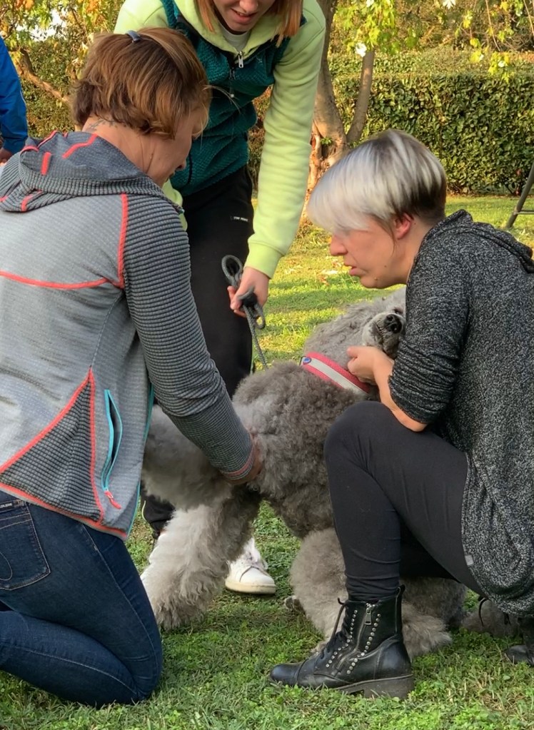 Io e 3 dei miei cani (Athena, Sirio e Michelle, visto che Dafne e’ già seguita da un anno a livello fisiatrico dal Dott. Passalacqua) abbiamo partecipato ad un paio di giornate sul CANE, per aiutare gli studenti sia del primo che del secondo anno a capirci di più su fisionomia e trattamenti da eseguire.