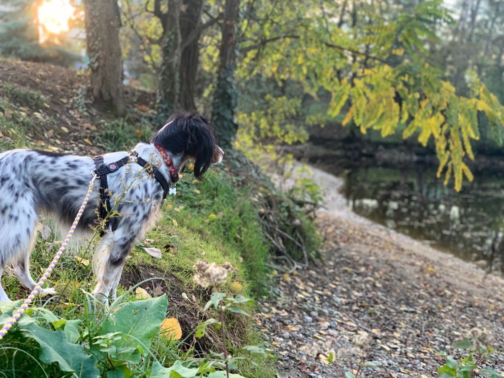 Voglio raccontarvi un aneddoto: dopo la sua adozione, la proprietaria mi ha contattata per fare qualche lezione e ne sono stata ben felice, visto che era una mia compagna di scuola che non vedevo da circa 10 anni! Certe volte “i cani uniscono” le persone, anche quando si erano perse di vista. ร capitato anche a voi di sentirvi piรน vicini a persone che non vedevate da tempo, o con cui pensavate di non avere molto in comune, oppure di conoscere qualcuno proprio grazie a quattro chiacchiere sui vostri cani? A me sรฌ, spessissimo! Trovo sia un ottimo modo per rompere il ghiaccio e anche per capire un po’ di piรน la sensibilitร dell’interlocutore, giร solo ascoltando cosa dice sul suo animale. Tornando a noi, o meglio, a Ginger, vorrei dirvi che รจ molto dolce, ma anche un po’ fifona, come tanti Setter. Viene dal canile, anche se รจ stata adottata da piccolina e ama stare sia sul divano che all’aria aperta. A casa mia, nonostante mi conoscesse, all’inizio era timorosa; la prima esperienza fuori casa puรฒ sempre dare dei risultati inaspettati. Ginger aveva conosciuto precedentemente anche i miei cani, ma inizialmente non era abbastanza tranquilla per poterci giocare. Ecco allora l’illuminazione: che cosa piace fare ad un mix setter? Sicuramente un’esplorazione nel posto piรน “naturale” possibile!